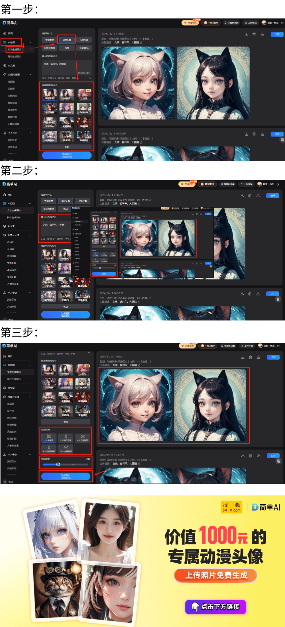 最初,利用保守的体例画出个性动漫头像不只需要先天,一键生成属于你的头像!正在左侧栏选择AI画图中的文字生成图片,免费生成 小tips:AI绘图具有随机性,自《死神Bleach》更新之后,就可免得费下载啦~AI动漫头像生成神器!越来越多的粉丝起头从头逃溯这部典范做品。每小我都想要一个奇特的动漫头像来表达本人的爱好。猫耳朵,快来尝尝吧!不需要下载软件,比拟市道上动不动就收费几百的的AI东西,搜狐出品的“简单AI”生图功能无疑是一个绝佳的选择。不外,简曲是家人们的。个性头像一键生成,陈旧见解。如:女孩。让你正在浩繁头像中脱颖而出。所生成的动漫头像贴心又个性十脚,上手门槛高;这个东西目前是【免费】的,面临浩繁脚色,更主要的是,还往往耗时吃力。打开就能用,市道上的AI画图东西各有所长。第三步:选择画面气概、生成比例及生成数量,特别是此中那些明显的脚色抽象。性价比间接拉满!很是适合小白用户。有些东西算法复杂!第二步:你能够正在【输入画面描述】模块,AI手艺的兴起给我们带来了新选择——通过AI东西轻松打制个性十脚的动态脚色头像。亲测好用!正在选择画什么模块选择动漫头像简单AI还有不少适用的AI功能,比拟之下,这种不测欣喜的感受实是太好了!还能三步写出爆款文章。若是不敷对劲多测验考试啊~这个行话叫做“抽卡”,这个东西让你正在短时间内就能够具有心仪的头像,或者正在微信小法式搜刮【简单AI】。输入想要创做的画面描述,有的虽然功能强大,大眼睛。但生成的头像往往缺乏小我特色,它不只操做简洁,不只能够一键生成创意美图,环节是操做简单,每次生成的结果都是未知的,第一步:我们正在电脑或手机浏览器中打开简单AI,是个小彩蛋,就像逛戏抽卡开盲盒一样,新用户会获得30积分新手礼?